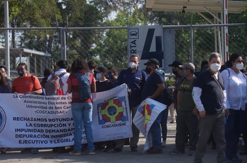 “Como trabajadores quienes somos profesionales y estudiantes condenamos al Consejo superior Universitario por ser los responsables de la actual crisis en la universidad, quienes no han garantizado un proceso limpio y transparente en las elecciones a rector. Asimismo, condenamos el actuar del rector en funciones Pablo Oliva, quien no ha tenido la capacidad de defender la autonomía, el presupuesto y la academia en nuestra universidad, siendo él quien debe representar la unidad de la comunidad universitaria. Condenamos el actuar del secretario general de la universidad, Gustavo Enrique Taracena Gil, por el silencio mantenido hasta el momento, lo cual lo hace cómplice de la crisis universitaria. Condenamos el actuar del director de Asuntos Jurídicos, Luis Fernando cordón Lucero, por la tendenciosa asesoría en dictámenes y resoluciones que solo refleja la incapacidad para ejercer dicho cargo”, señaló el sindicato.