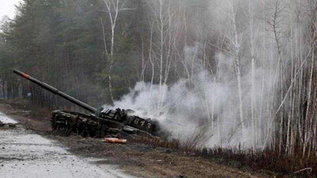 Un video captó el momento en el que una enorme bola de fuego envuelve un tanque ruso, luego de que paracaidistas ucranianos lanzaran un ataque a la unidad y detonara su munición a bordo.