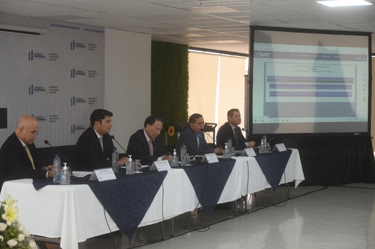 Autoridades de la Superintendencia de Administración Tributaria (SAT) y de los ministerios de Finanzas y de Economía brindaron una conferencia de prensa para dar a conocer detalles de la devolución del crédito fiscal a exportadores.