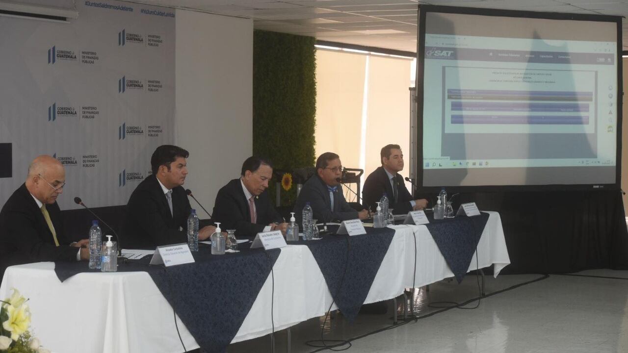 Autoridades de la Superintendencia de Administración Tributaria (SAT) y de los ministerios de Finanzas y de Economía brindaron una conferencia de prensa para dar a conocer detalles de la devolución del crédito fiscal a exportadores.