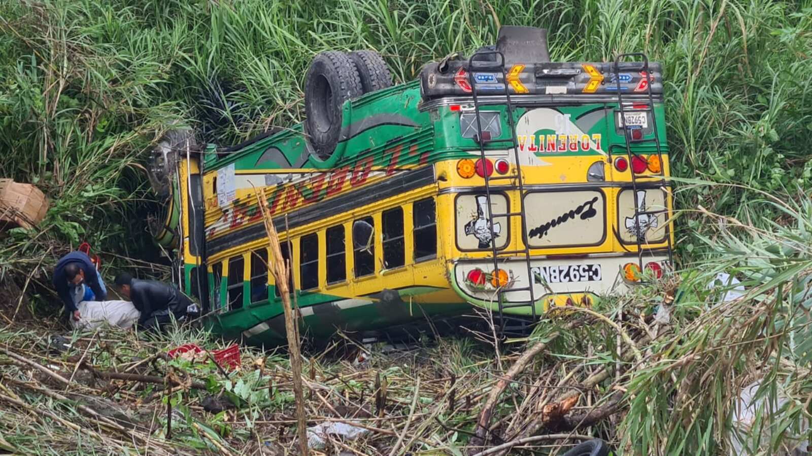 Debido al impacto, el bus de transporte extraurbano se salió de ruta, volcó y se precipitó hasta una hondonada a un costado de la carretera.