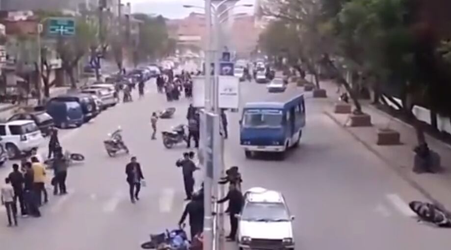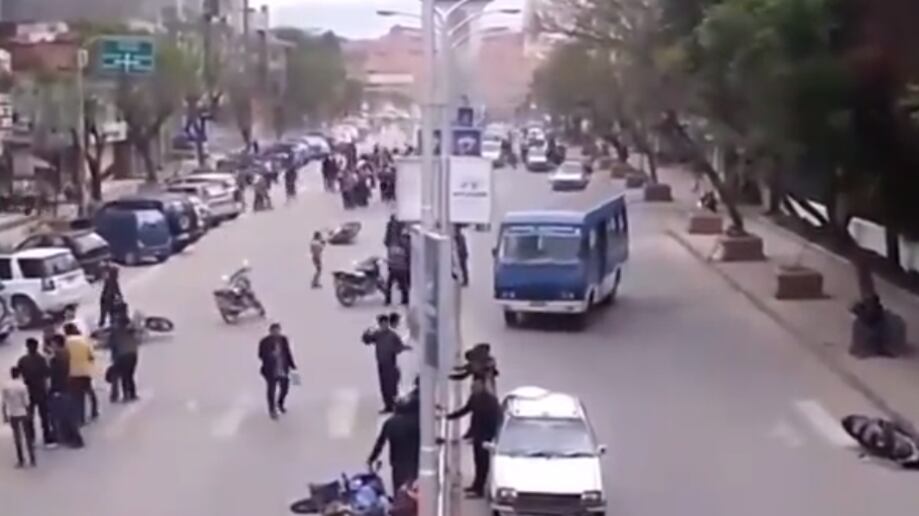 Una cámara de tránsito captó el momento del fuerte temblor de magnitud 7.2 que sacudió este jueves, 26 de mayo, el sur de Perú, causando alarma entre la población, aunque, de momento, sin dejar víctimas ni daños, según las autoridades. En las imágenes se puede observar cómo, debido al fuerte sacudón, los transeúntes corren para intentar ponerse a salvo y automovilistas y motoristas detienen súbitamente la marcha.