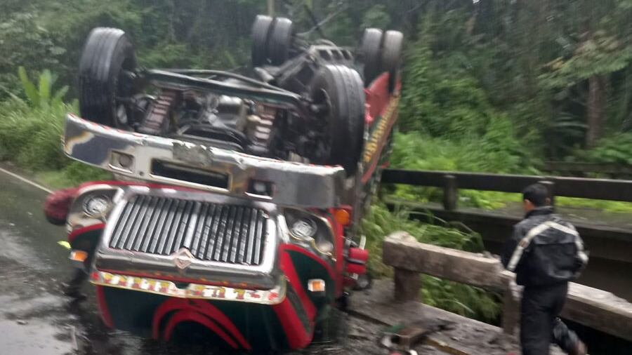 Asimismo, se indica que el bus estuvo a punto de caer al río debajo del puente, pero quedó en la orilla de dicha estructura.