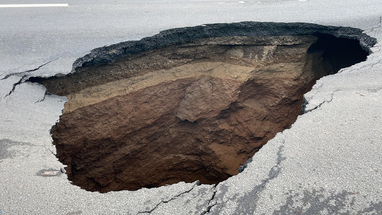 El director de Covial, Mario Aguilar, explicó en el programa “A Primera Hora” de Emisoras Unidas que se están haciendo los estudios necesarios a través de un sistema de georradar para determinar qué originó el colapso en esa ruta. No obstante, adelantó que se cree que podría tratarse del colapso de un colector, el cual podría haber sido construido paralelamente al edificar el paso a desnivel hace unos 20 años.