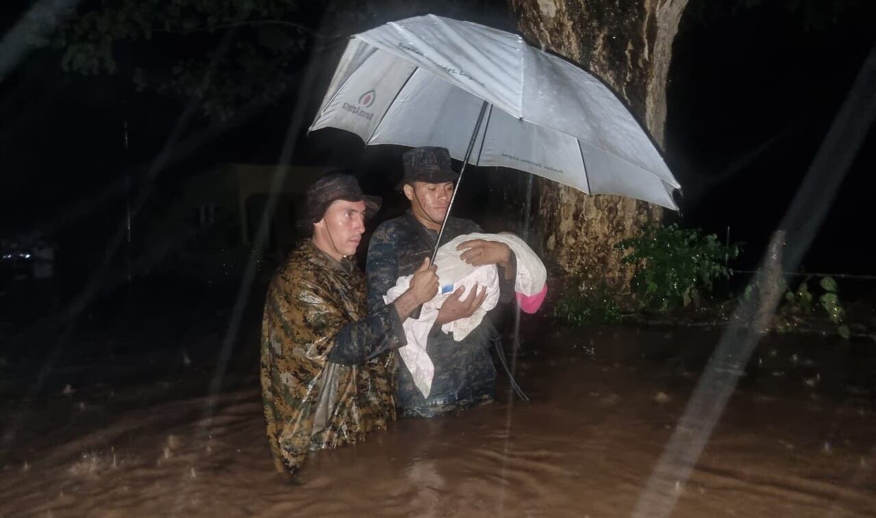 Las inundaciones y el desbordamiento de los ríos Negro y río Paz afectaron a los habitantes de la comunidad quienes abandonaron sus hogares durante la noche y madrugada del pasado lunes.