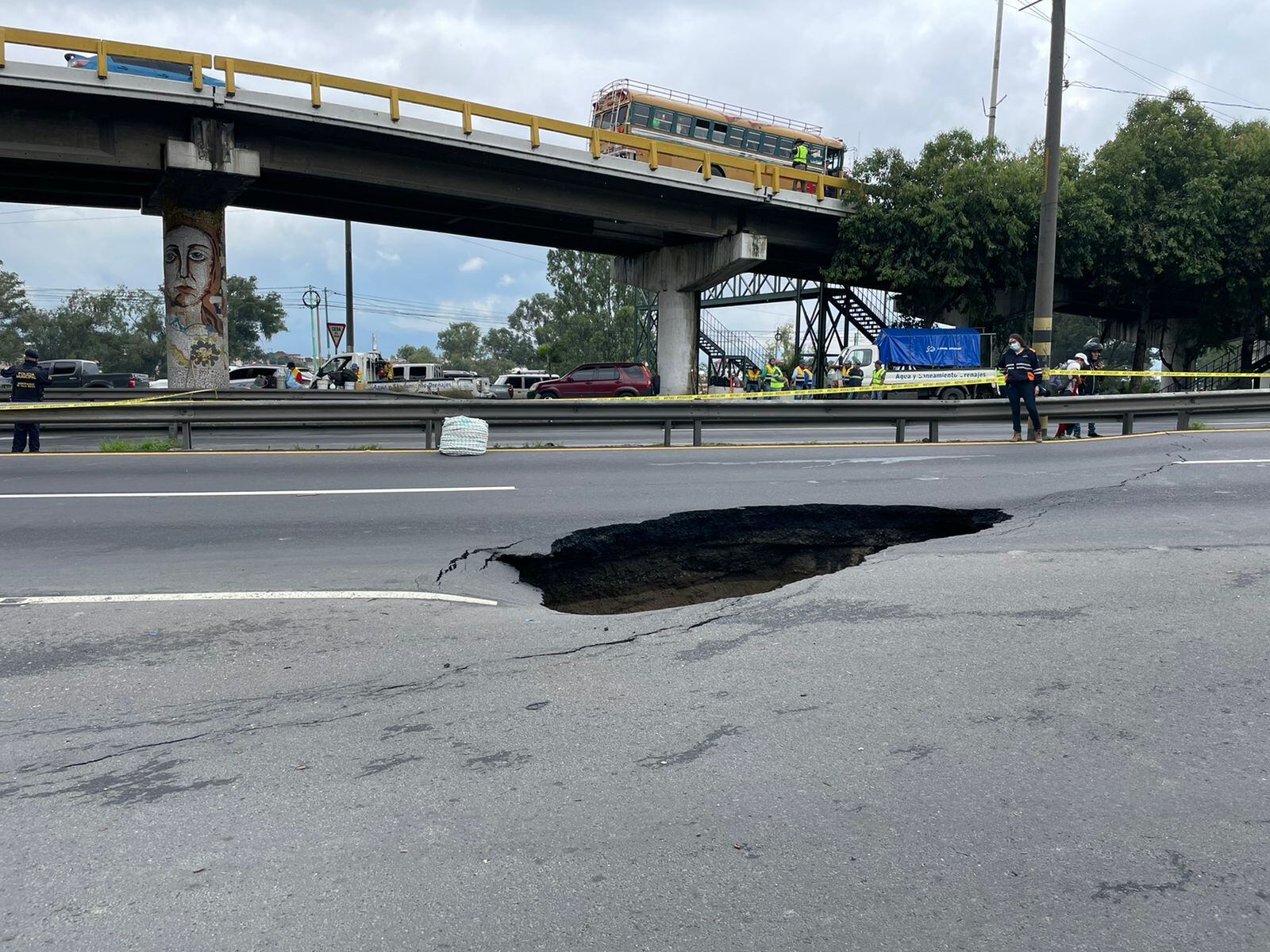 “Eso no fue de un día para otro, la falla tiene mucho tiempo de estar ahí. Incluso en el terremoto del 76, esa parte de Villa Nueva quedó incomunicada y esa es la falla de Catalina”, dijo Gramajo. Respecto al tiempo que tomarán las reparaciones y habilitar de nuevo la ruta, no indicó un tiempo específico. La primera fase, en la ruta crítica, se deberá estabilizar el terreno para garantizar que se pueda movilizar un puente Bailey. Debido a las lluvias persistentes que se registraron ayer en el sector, hasta este día un equipo de la Dirección de Agua y Saneamiento de la municipalidad de Villa Nueva ingresará a un drenaje colindante al agujero para evaluar la zona. “El día de ayer fue un día netamente técnico utilizando equipo para ver cavernas, drenajes y la situación en ese sector. Hoy ya hay acciones”, dijo Gramajo. Indicó además, que ya solicitó a la administración de la Vía Alterna al Sur (VAS) que facilitara a los usuarios una tarifa de emergencia. “Ya tuve comunicación con sus personeros”, especificó. No obstante, fijar una tarifa no es una decisión municipal y según el jefe edil se hizo la petición a la empresa, pero no propuso a los administradores una cantidad específica. Impacto en el tránsito vehicular El portavoz de la Policía Municipal de Tránsito (PMT), Amílcar Montejo, informó que las unidades de Villa Nueva, San Miguel Petapa, Villa Canales, Mixco, Santa Catarina Pinula y Guatemala, unieron esfuerzos para regular la movilidad en los corredores vehicular. Tras el primer día del cierre en el tramo en ruta al Pacífico, Montejo dijo que se habilitaron carriles reversibles y el tránsito avanzó, pero siguen atentos a las acciones en horas de la tarde y noche cuando la circulación aumenta. Para el segundo día de la emergencia, el portavoz dijo que ya se está más informado técnicamente del socavamiento y mejoró la circulación gracias a que desde ayer se comunicaron las vías alternas. La Dirección General de Protección y Seguridad Vial (Provial) informó sobre las rutas alternas y ofreció una herramienta en Google maps a la que se puede acceder en este enlace. El director de COVIAL afirmó que podrían instalarse dos puentes Bailey para agilizar el paso en el kilómetro 15.5. Sin embargo, según dijo, todo depende del análisis que aún se está haciendo.