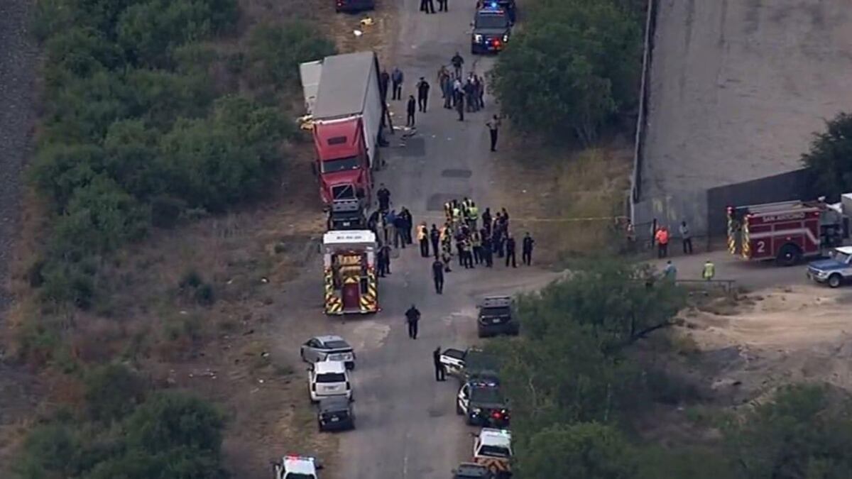 El camión con remolque fue abandonado a la vera de una carretera en una zona escasamente poblada a 14 kilómetros del centro de San Antonio. El vehículo quedó junto a una vía férrea y cerca de varios depósitos de chatarra y negocios de autopartes.