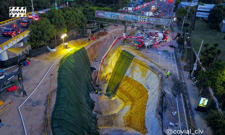 El Ministerio de Comunicaciones, Infraestructura y Vivienda (CIV) informó que durante los trabajos en el hundimiento que se registró en el kilómetro 15 de la ruta al Pacífico se identificaron nuevas cavernas a nivel de la tubería colapsada. Por tal motivo, a partir de las últimas horas de este jueves, 30 de junio, se procedió a inyectar concreto fluido (lodocreto) dentro de las cavernas y en los segmentos de colector existentes.