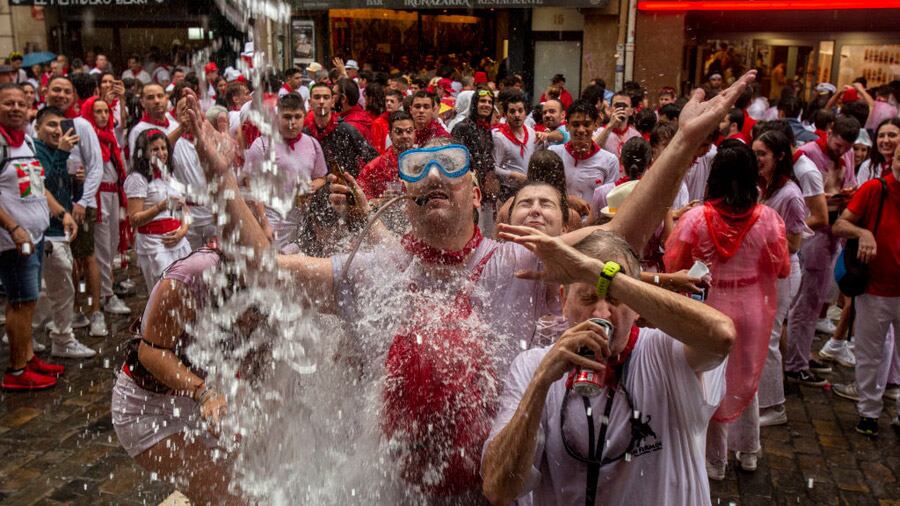 Desde horas antes del “chupinazo”, este miércoles ya se veía a muchos asistentes bebiendo de sus grandes botellas de sangría por las estrechas calles empedradas del centro de Pamplona.