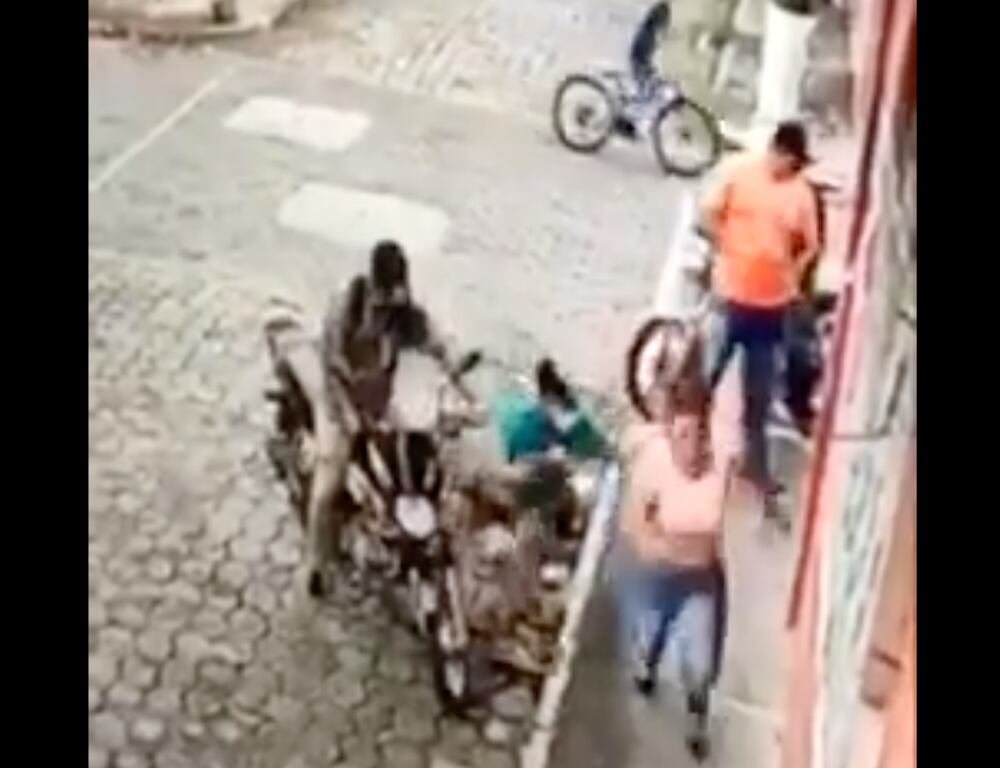 En el video, que dura un minuto y 30 segundos, se observa a los motoladrones acercándose a sus víctimas que se encontraba en la esquina de la calle. La pareja se percata de los sujetos, por lo que la mujer trata de escapar, pero es retenida por uno de los hombres, quien la tira al suelo y comienza a golpearla y a despojarla de sus pertenencias. Luego los cómplices empiezan a revisar al hombre y le quitan los objetos de valor. Tras el atraco, los delincuentes escapan del lugar.