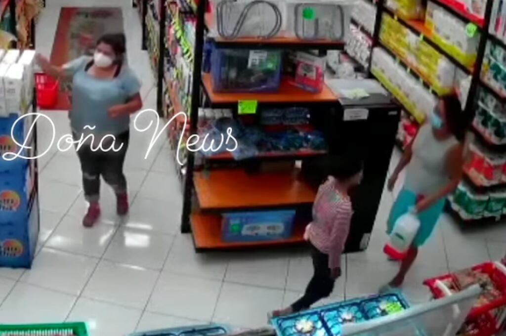Dos mujeres planificaron un robo que quedó evidenciado en un video de seguridad de un supermercado ubicado en Taxisco, en Santa Rosa. Las supuestas compradoras llegan acompañadas de una niña que utilizan para desviar la atención y así sustraer los productos.