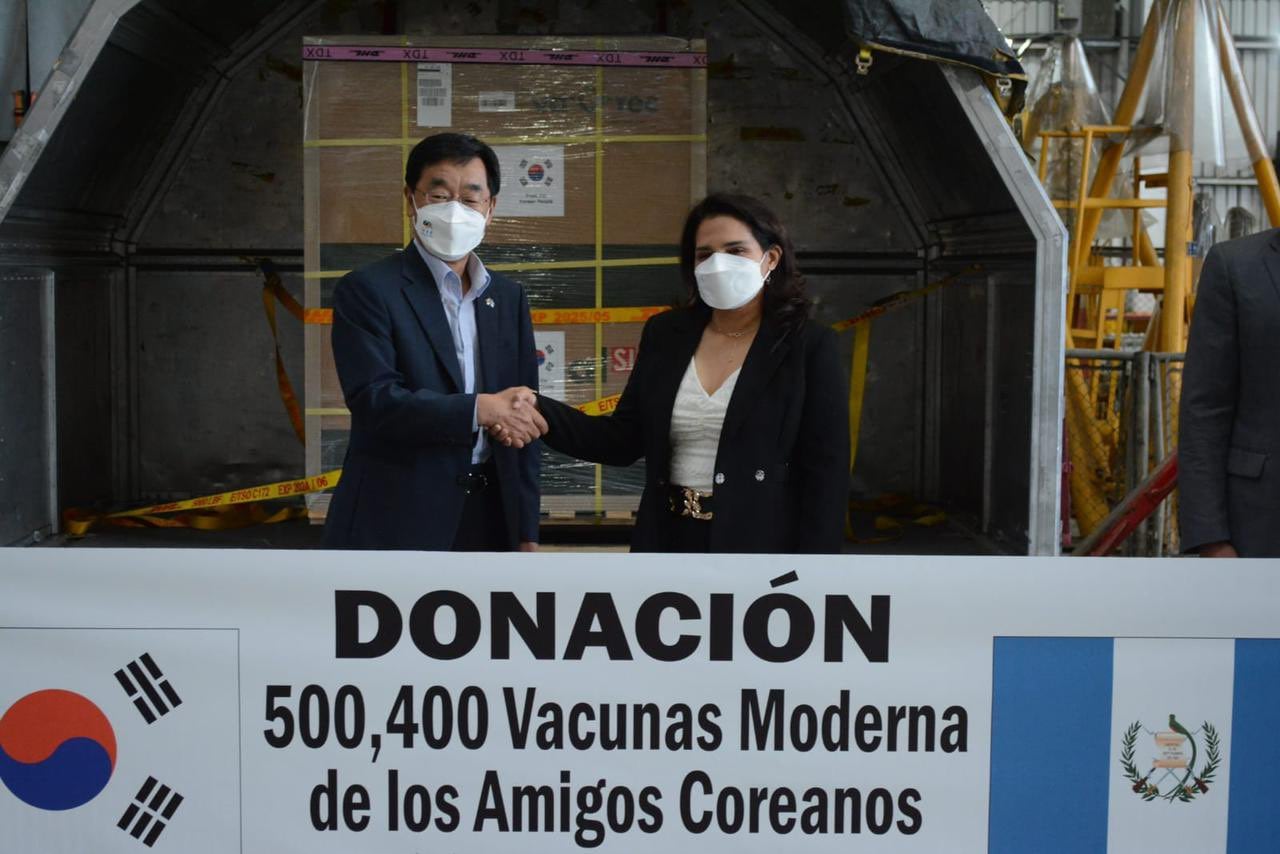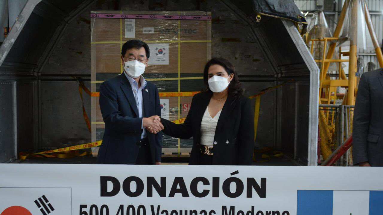 Guatemala recibió 500 mil 400 dosis de vacunas de Moderna, donadas por el gobierno de Corea, las cuales permitirán retomar la inmunización contra el SARS-CoV-2 en menores entre 6 y 11 años.