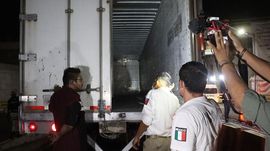 Los inmigrantes eran transportados en un tráiler el pasado 27 de julio en horas de la noche y fue abandonado en la carretera Acayucan-Sayula de Alemán.