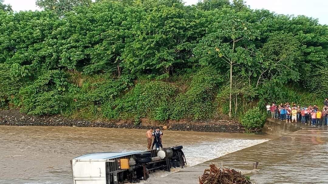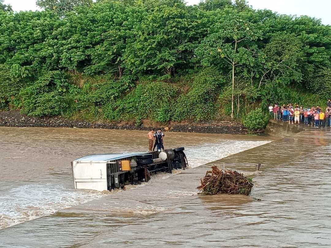 Un camión cuyo conductor perdió la orientación de los bordes del puente Badén en aldea El Túnico, El Estor, Izabal, que cruza el río con el mismo nombre cayó a las aguas del afluente.