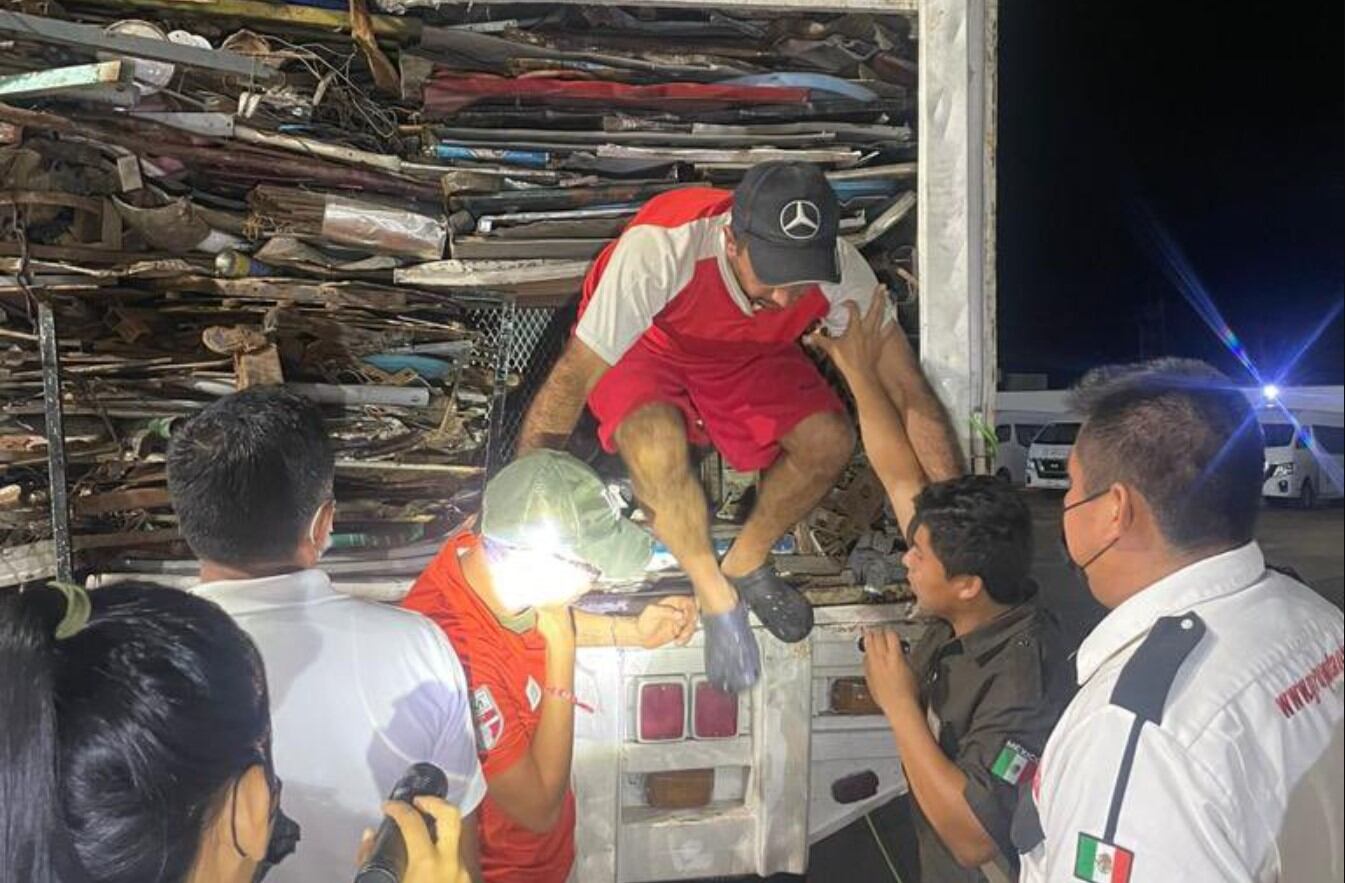 El Instituto Nacional de Migración de México (INM) identificó a 45 migrantes extranjeros que viajaban hacinados en un camión que, en apariencia trasportaba desperdicio industrial.