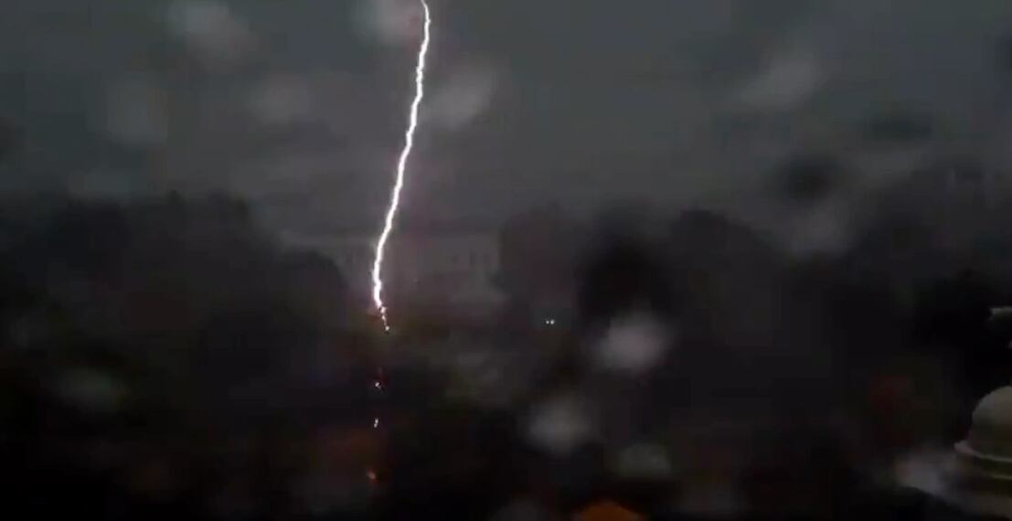 En redes sociales se difundió el video del momento en el que el rayo cayó en la Casa Blanca. Las imágenes fueron captadas por medios estadounidenses.