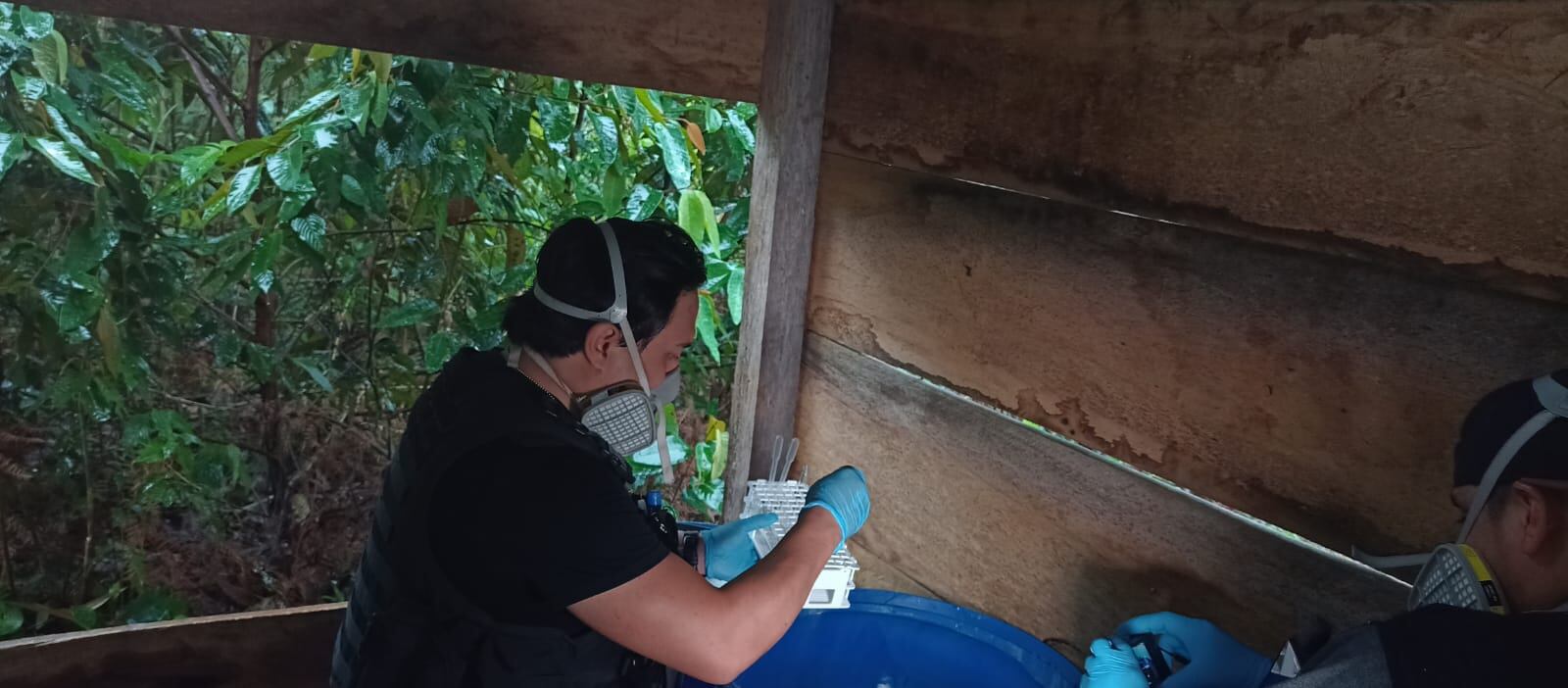 Esta mañana finalizó el trabajo de la Fiscalía contra la Narcoactividad centrada en buscar y documentar los indicios y tomar fotografías en un narcolaboratorio localizado en Izabal. El objetivo es iniciar la investigación contra narcotraficantes.