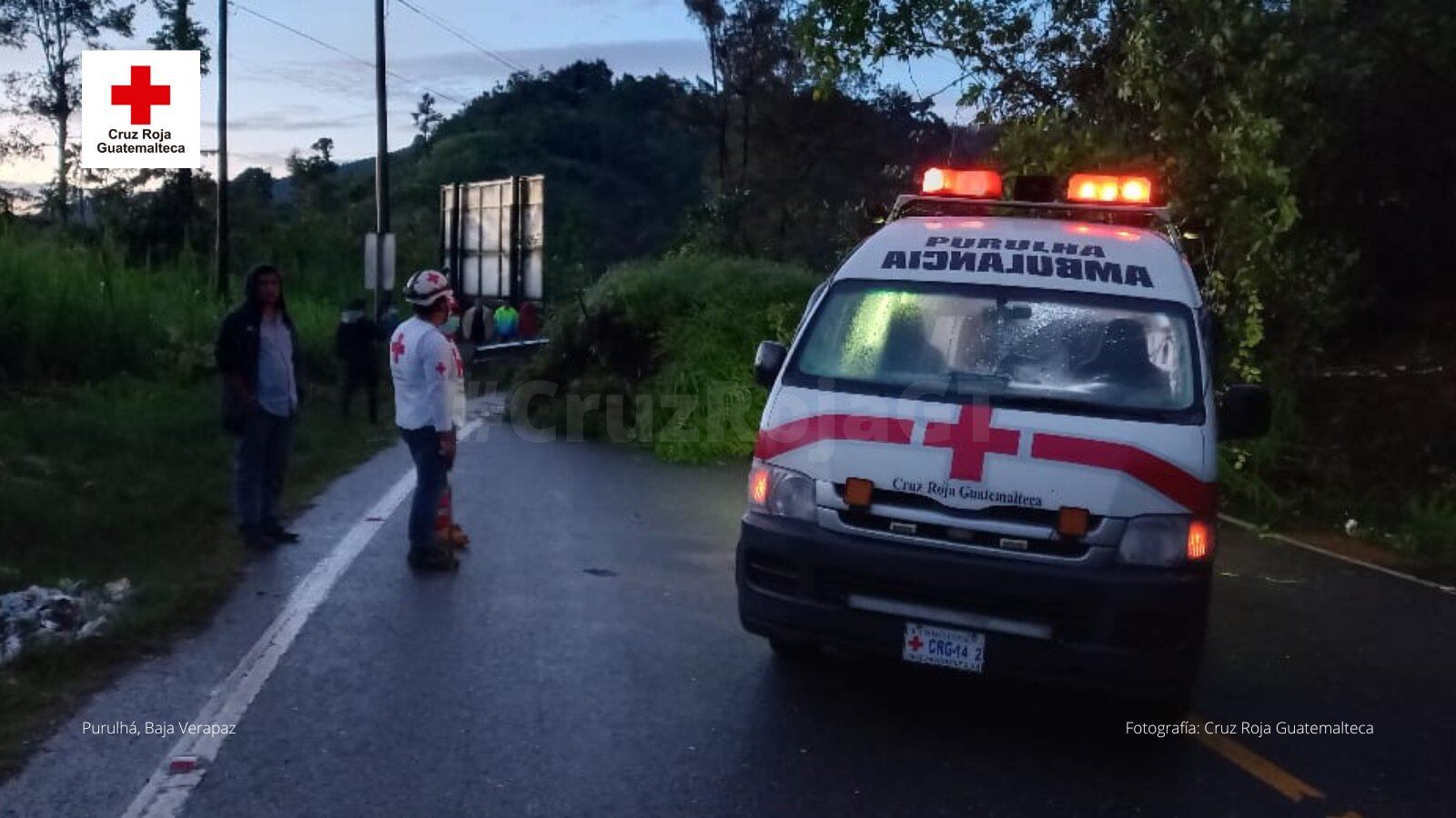 La Cruz Roja reportó un derrumbe de tierra que afectó ambas vías en el kilómetro 163, en jurisdicción de Purulhá, Baja Verapaz.