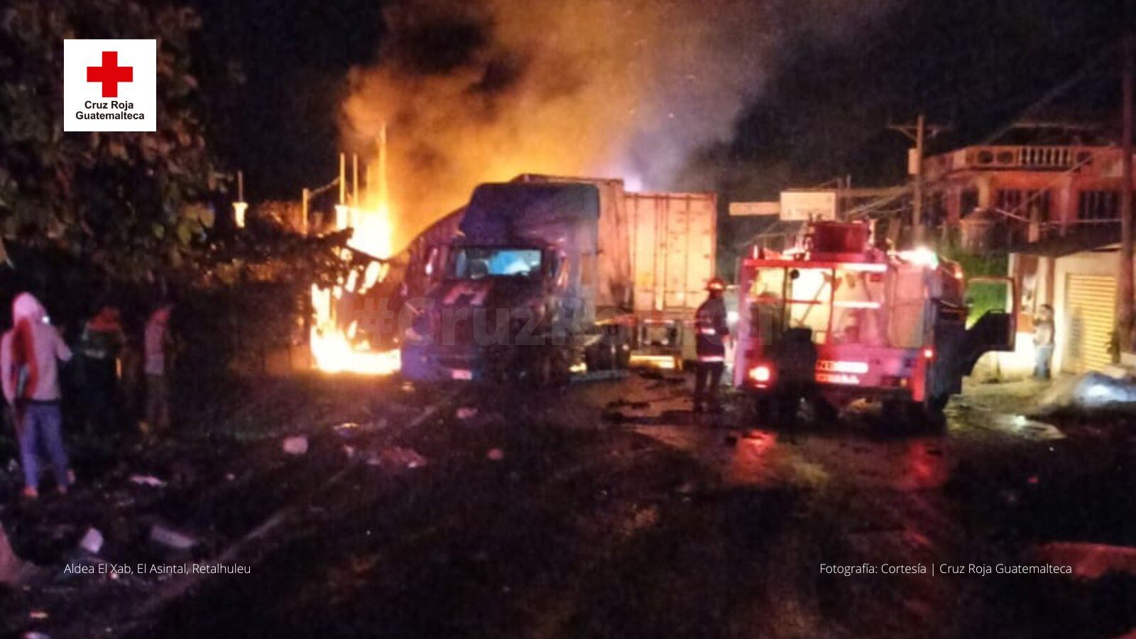 La Cruz Roja también mostró imágenes que mostraban la magnitud del percance y un video en el que se observa la llegada de otro vehículo contra incendios.