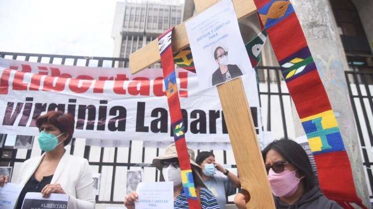 “Como parte de su trabajo, ella identificó que había un juez que estaba filtrando información de un caso que estaba en reserva. ¿Qué es lo que hubieran hecho ustedes? Virginia hizo lo correcto”, dijo uno de los manifestantes en el lugar.