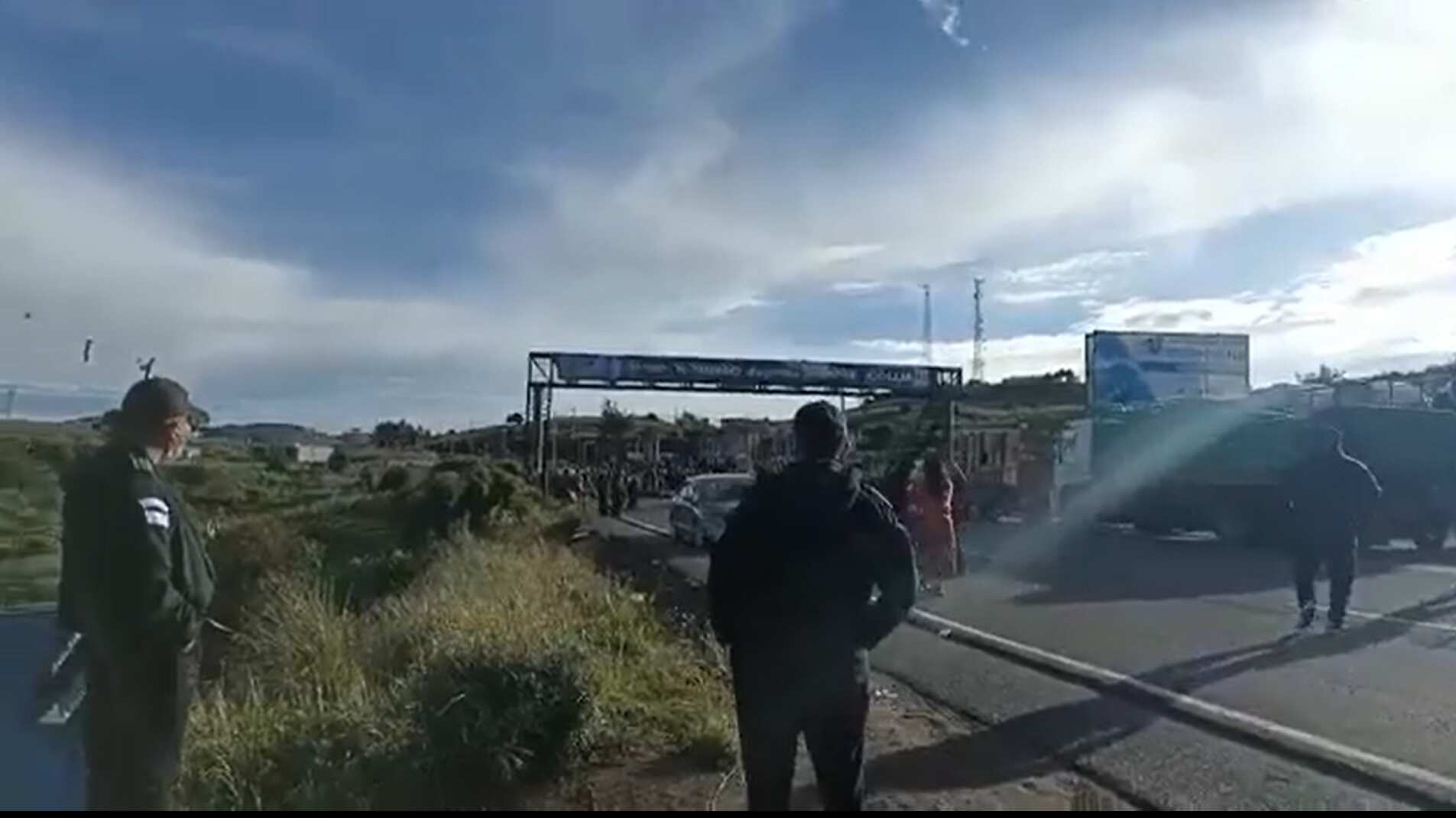 El grupo se mantiene a lo ancho de la carretera, lo que impide el paso y dejó a los conductores varados en ese punto, confirmó un reportero de Emisoras Unidas en el lugar.