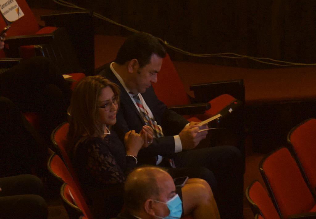 El exgobernante llegó al teatro acompañado de la exprimera dama de la nación, Patricia Marroquín de Morales, hecho que llamó la atención de los medios de comunicación que cubrieron la actividad. Los exfuncionarios fueron captados sentados en una esquina, en el área para invitados.