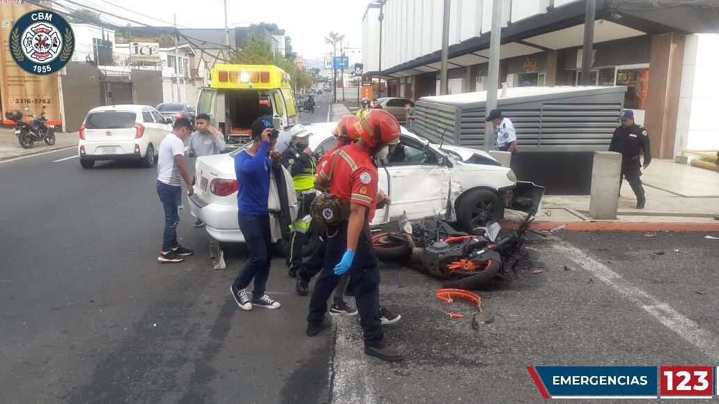 El accidente de tránsito que protagonizó una motocicleta y un automóvil blanco que sucedió en la zona 10 dejó a una persona fallecida y dos heridas.