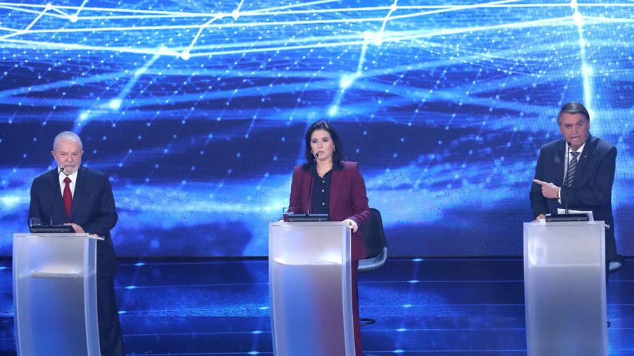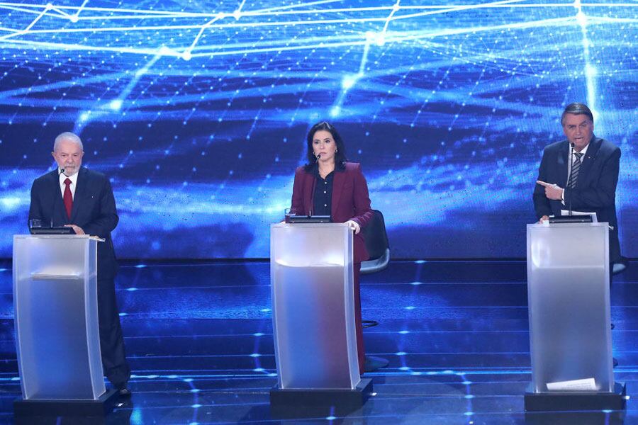 Además de Lula y Bolsonaro, el encuentro reunió a otros cuatro candidatos: el exministro de Hacienda Ciro Gomes, tercero en los sondeos (7%); Tebet en cuarto lugar (2%); la senadora Soraya Thronicke y Felipe D’Avila, ambos por debajo del 1% de las intenciones de voto.
