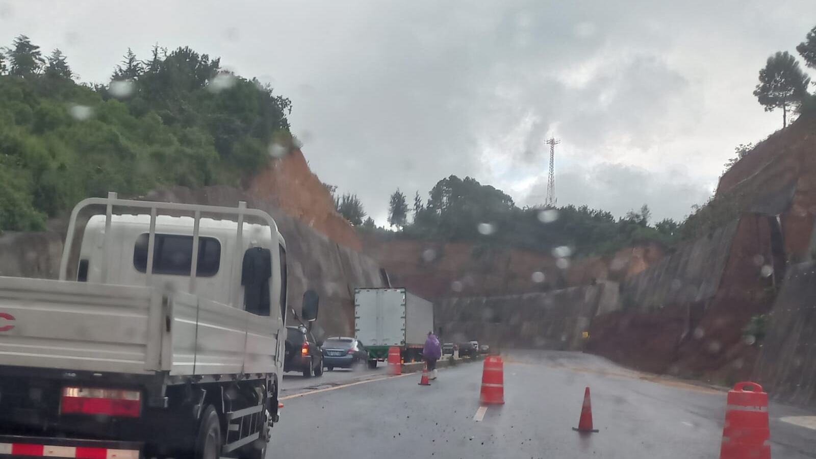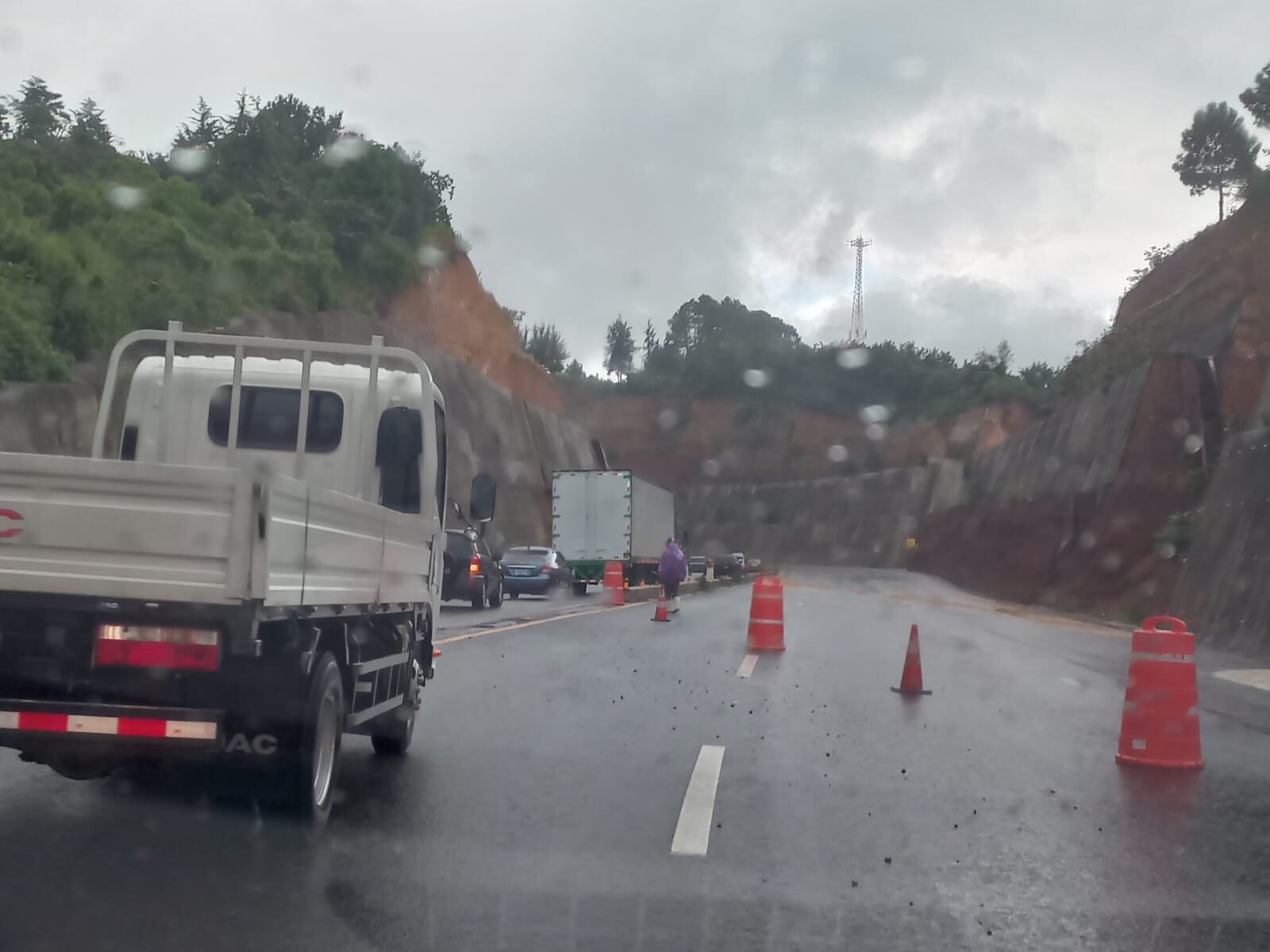 Autoridades de tránsito informaron que un solo carril sigue habilitado en el Libramiento de Chimaltenango, tras el último derrumbe registrado la semana pasada.