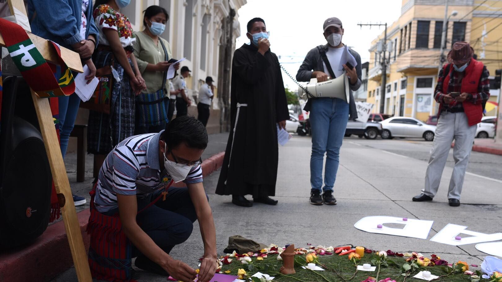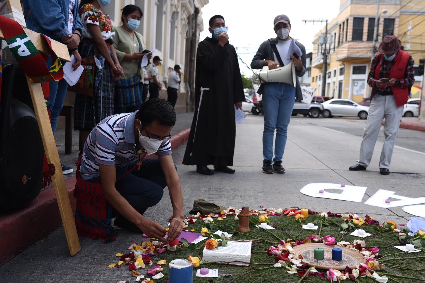 El Sector Interreligioso Centinelas lleva a cabo una actividad frente al Congreso de la República, en donde se mantiene un cierre vehicular perimetral, para enviar un mensaje a la juventud guatemalteca que se enfrenta a realidades que son ignoradas por las autoridades, como la violencia, pobreza y desigualdad.