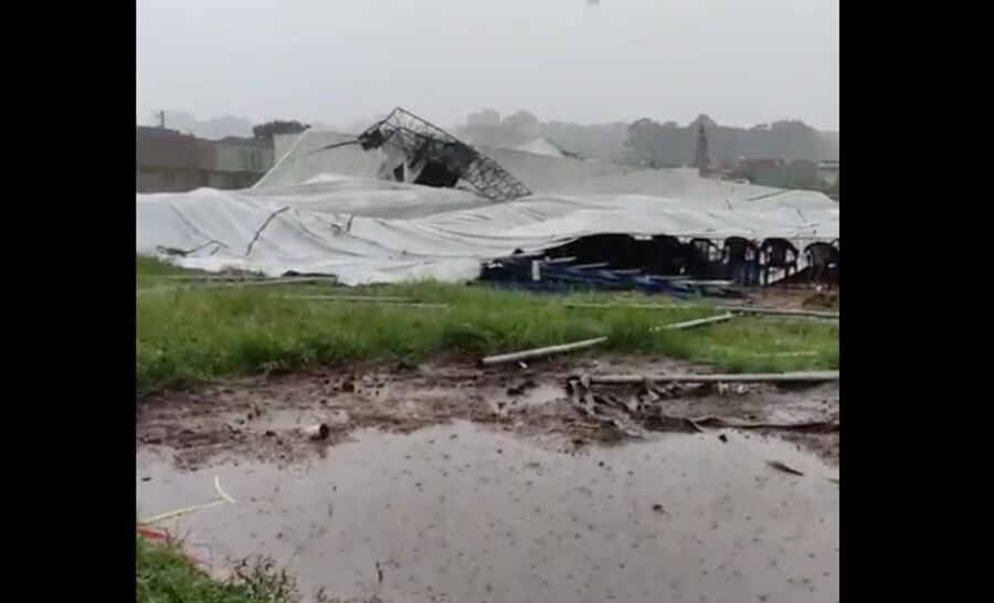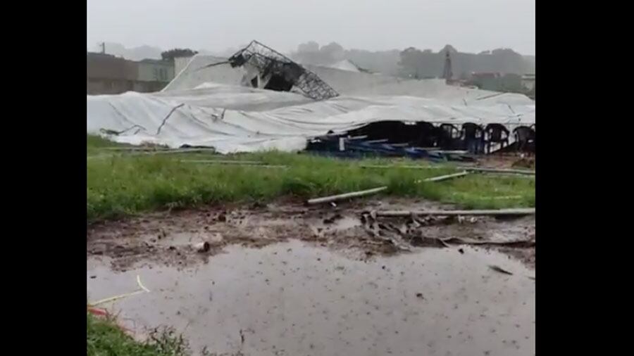 En las imágenes de la transmisión en vivo se pudo observar la carpa colapsada en el suelo, mientras la fuerte lluvia continuaba sumado a intenso viento que soplaba.