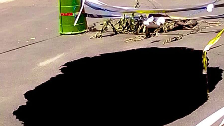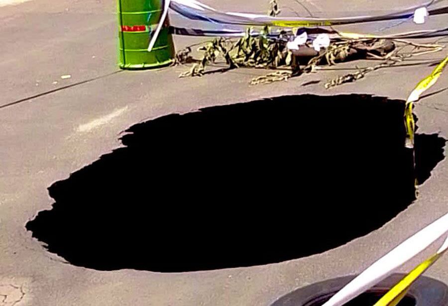 En la 27 avenida y bulevar El Naranjo, en la zona 4 de Mixco, en un área de carga y descarga en una zona industrial, se formó un agujero de grandes proporciones el cual impidió el paso en uno de los carriles del mencionado lugar.