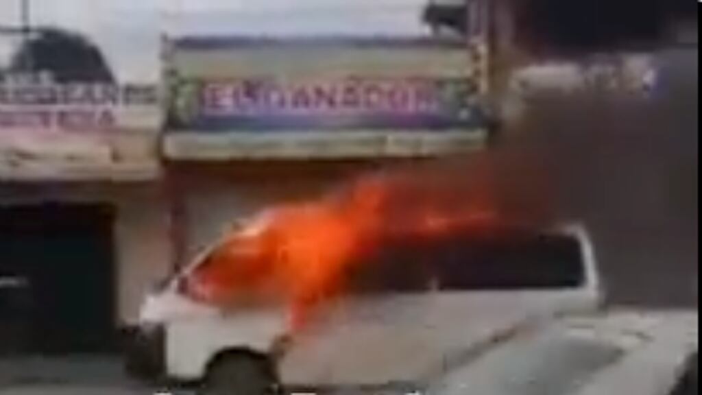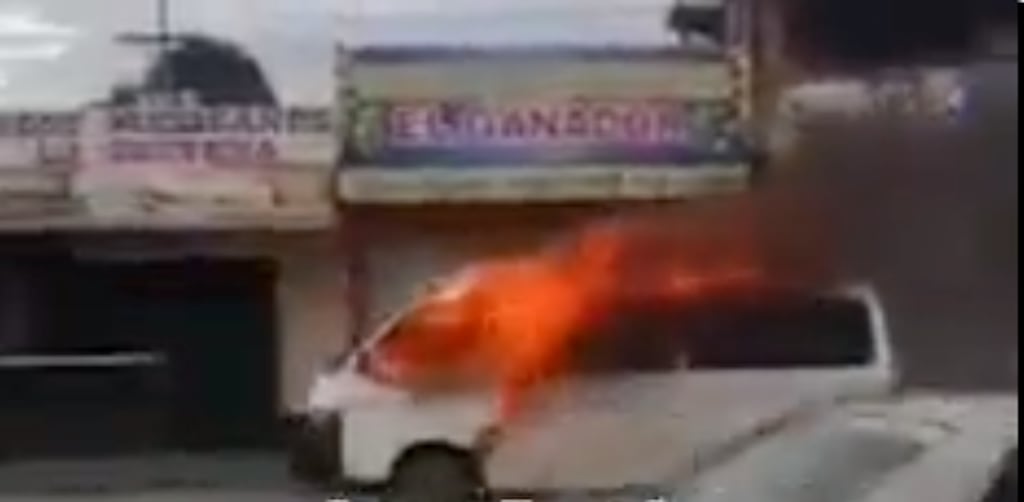 En redes circula el video del momento exacto en el que el microbús es consumido por las llamas. El piloto se lanzó de la unidad para salvar su vida.
