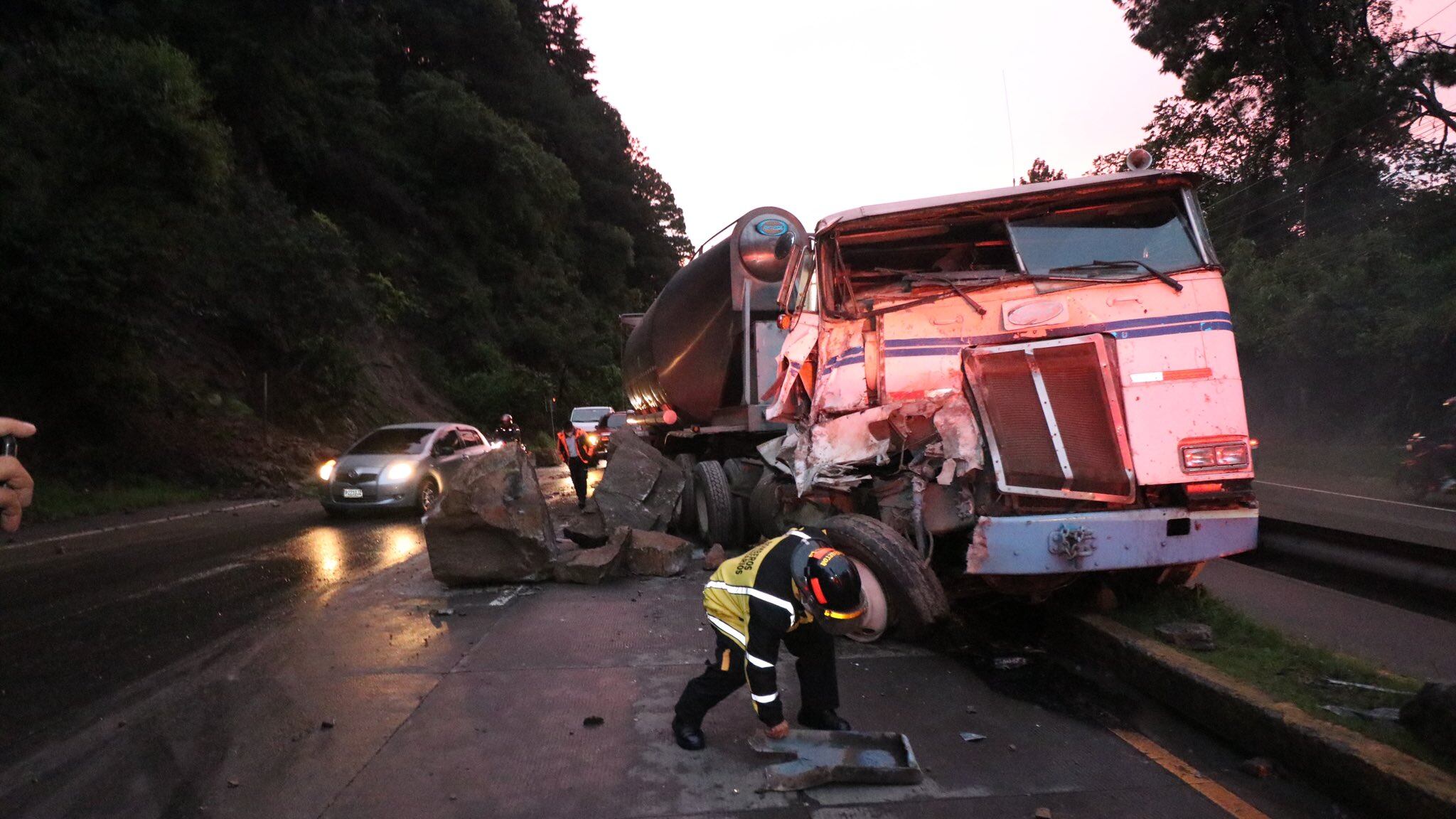La unidad de Protección Vial (Provial) reportó un accidente en el que resultó involucrado un tráiler tras un derrumbe en el kilómetro 24 de la ruta Interamericana, en jurisdicción de Mixco.