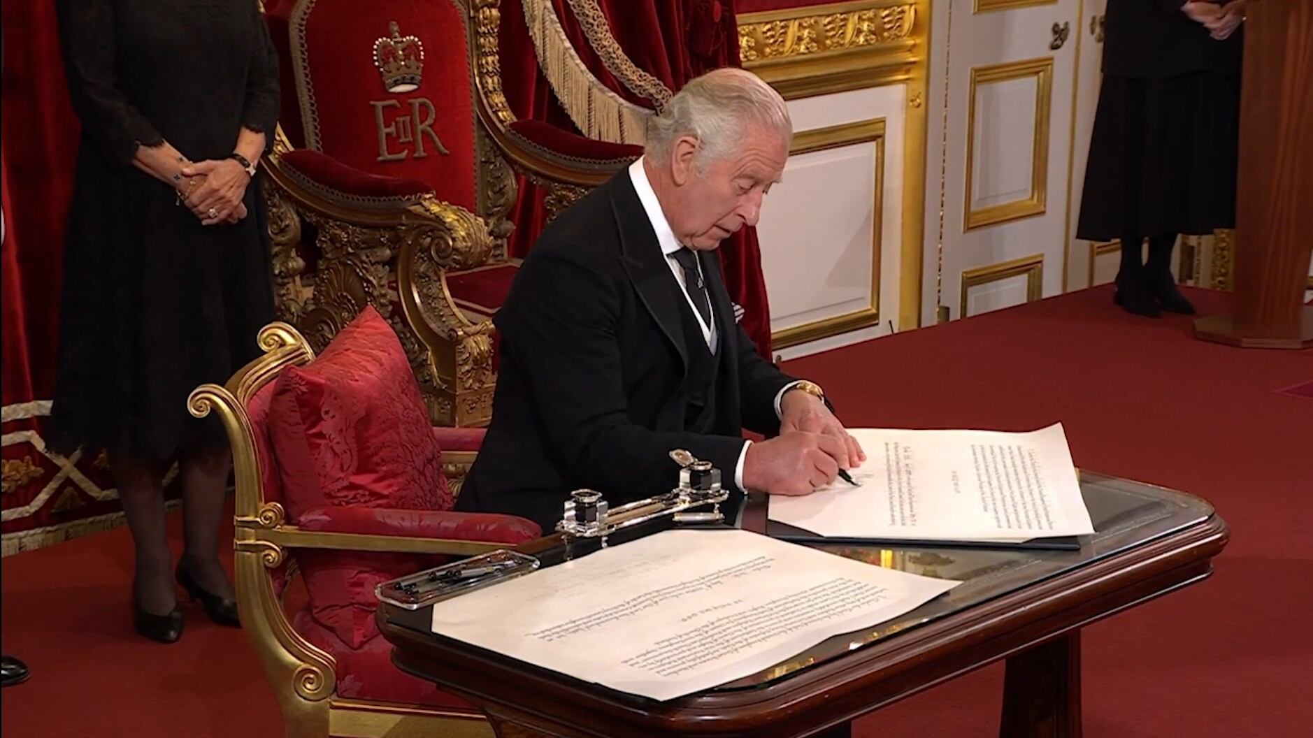 Bajo el son de los trompeteros reales y en presencia de la guardia real, un vocero del Consejo de Ascensión leyó la proclamación de Carlos III “por la gracias de dios”. A continuación, cañones dispararon salvas en su honor a lo largo y ancho del Reino Unido.