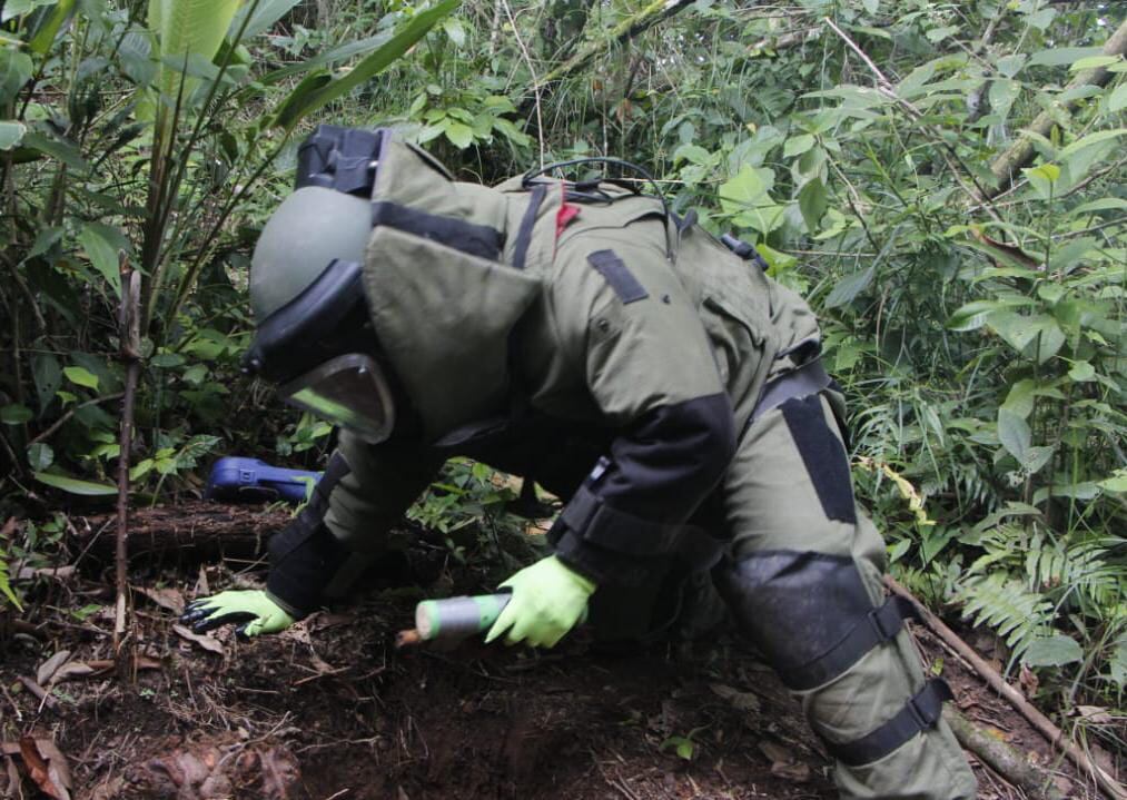 Entre las bombas detonadas que estaban desde el conflicto armado interno están un proyectil artillería calibre 105 milímetros y una granada de mortero de doble propósito de calibre 60 milímetros.