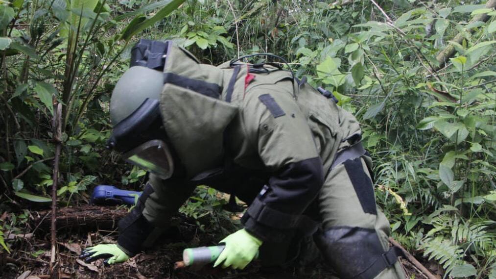 Entre las bombas detonadas que estaban desde el conflicto armado interno están un proyectil artillería calibre 105 milímetros y una granada de mortero de doble propósito de calibre 60 milímetros.