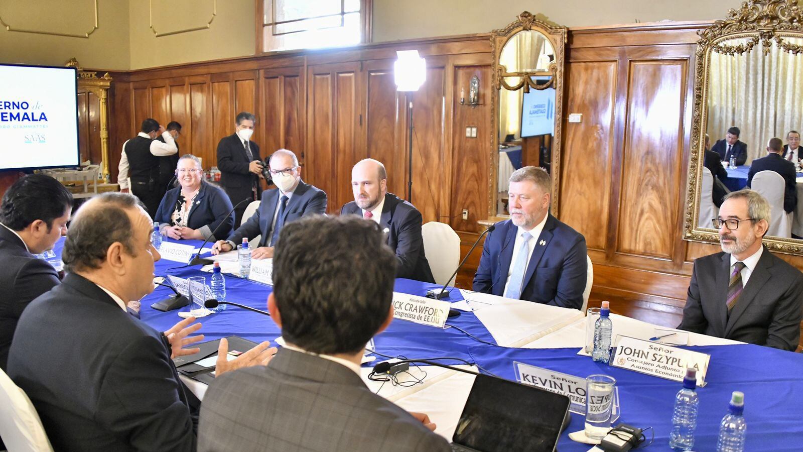 El presidente Alejandro Giammattei recibió la visita del congresista republicano de Kansas, Rick Crawford en la Casa Presidencial.