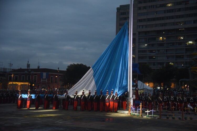 Las actividades dieron inicio con la izada de la Bandera de Guatemala, el símbolo patrio más antiguo, acto que estuvo a cargo de los mejores cadetes de la Escuela Politécnica, quienes rindieron honores a la bandera.