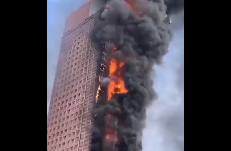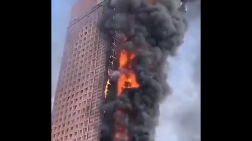 Imágenes difundidas por la televisión estatal CCTV mostraban todo un costado del rascacielos, de 42 plantas, envuelto en llamas. También se podía ver una gruesa columna negra escapando del inmueble y a personas tratando de ponerse a salvo, mientras escombros incandescentes caían desde las alturas.