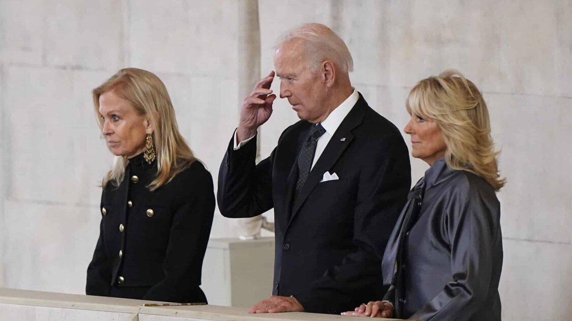 El presidente de Estados Unidos, Joe Biden, y su esposa Jill, asistieron este domingo a la capilla ardiente de la reina Isabel II en Londres para presentarle sus respetos.
