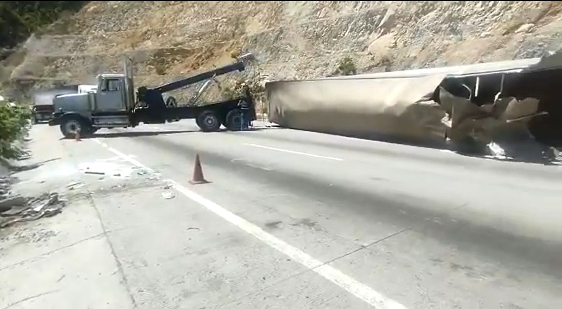 Un tráiler involucrado en el percance, volcó sobre la carretera y obstruyó el paso con dirección sur.