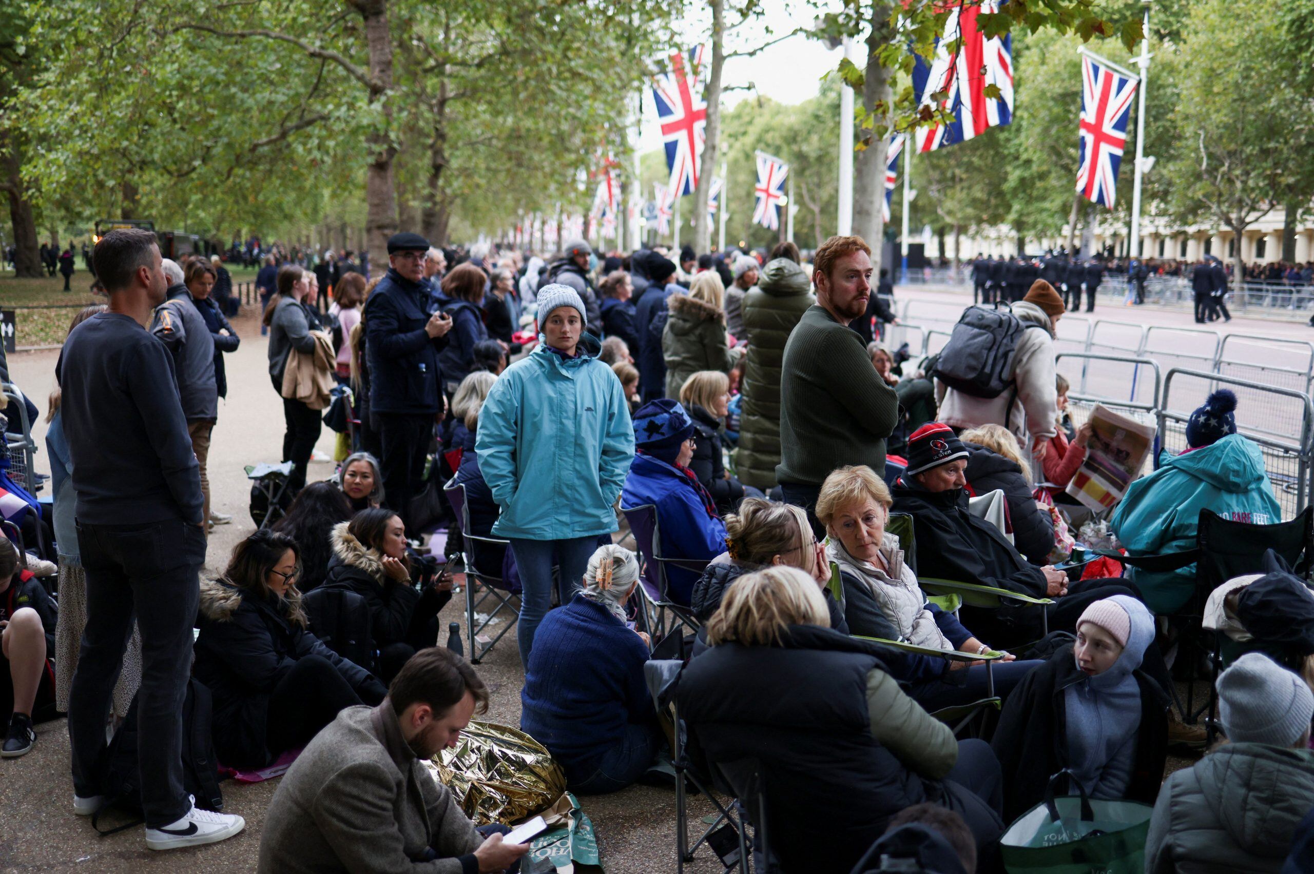 La mujer, equipada de una silla y “mucha comida”, espera poder ver el ataúd de la reina que, desde este lugar cercano al Palacio de Buckingham, será transportado en coche fúnebre a su última morada, el Castillo de Windsor.