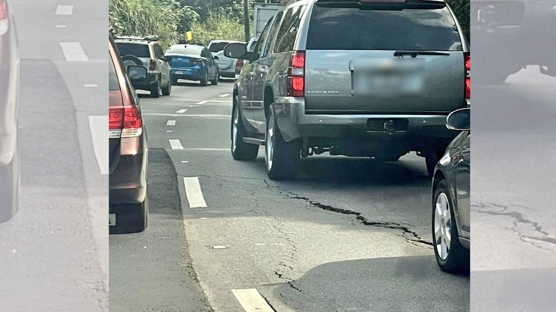 Aunque son varias fisuras, una de estas es más pronunciada en el carril de ascenso y que, según usuarios, se ha ido extendiendo con el pasar de los días.