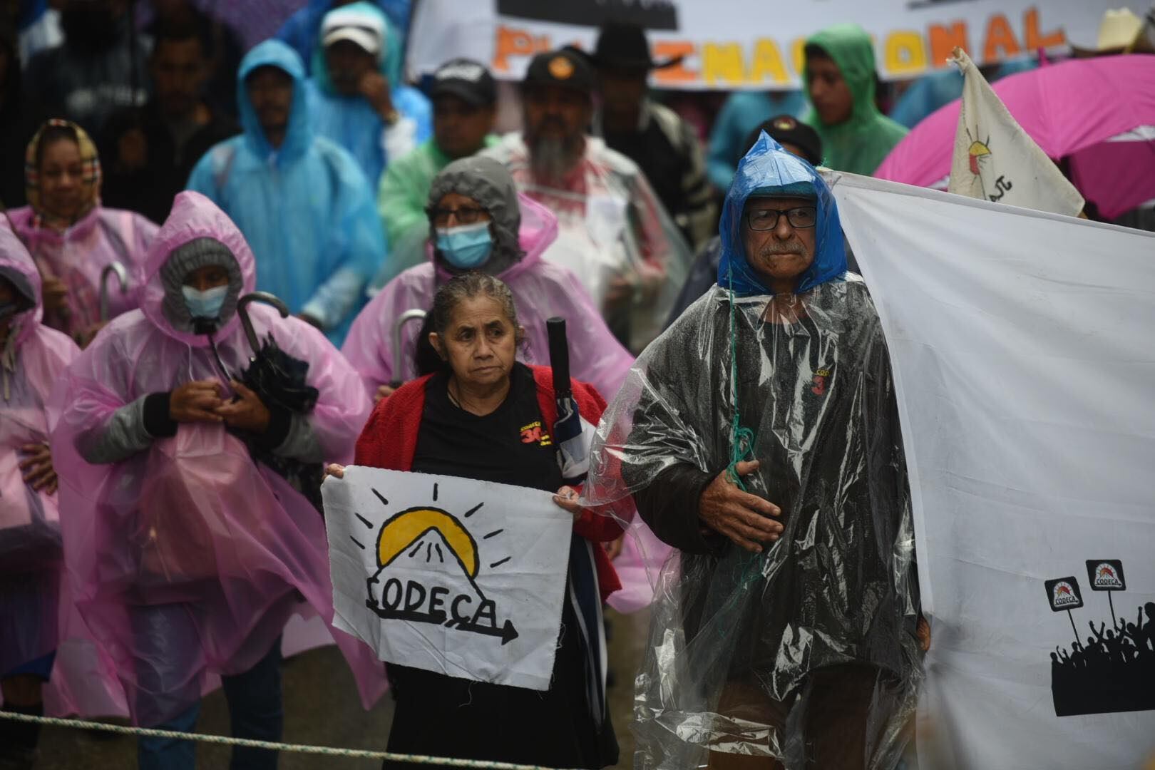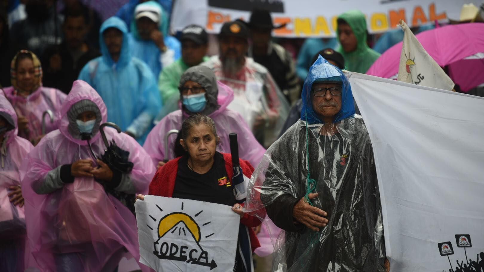 Bajo la lluvia y justo como lo anunciaron desde la semana pasada, integrantes del Comité de Desarrollo Campesino (Codeca), llevan a cabo este miércoles una manifestación en la ciudad capital.