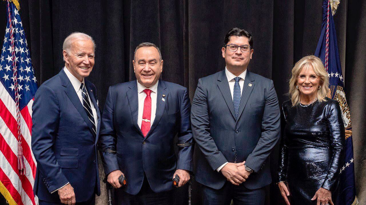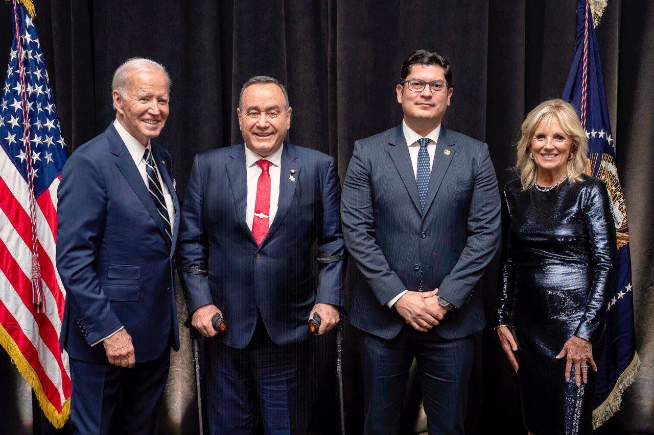 El presidente Biden fue acompañado de su esposa, la primera dama Jill Biden, mientras que Giammattei acudió junto con el ministro de Economía, Janio Rosales.