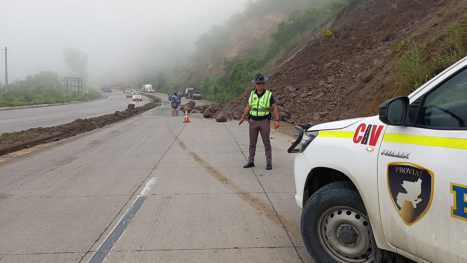 El deslizamiento obstruye un carril de la ruta que conduce de Sanarate, El Progreso, con dirección a la capital.
