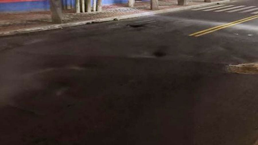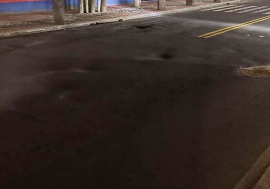 En las imágenes se puede observar un agujero al lado de una banqueta.