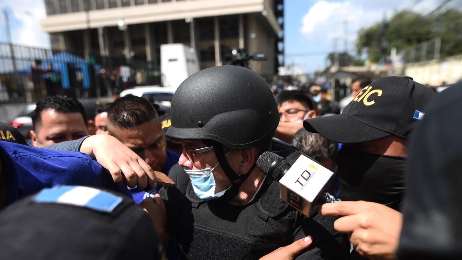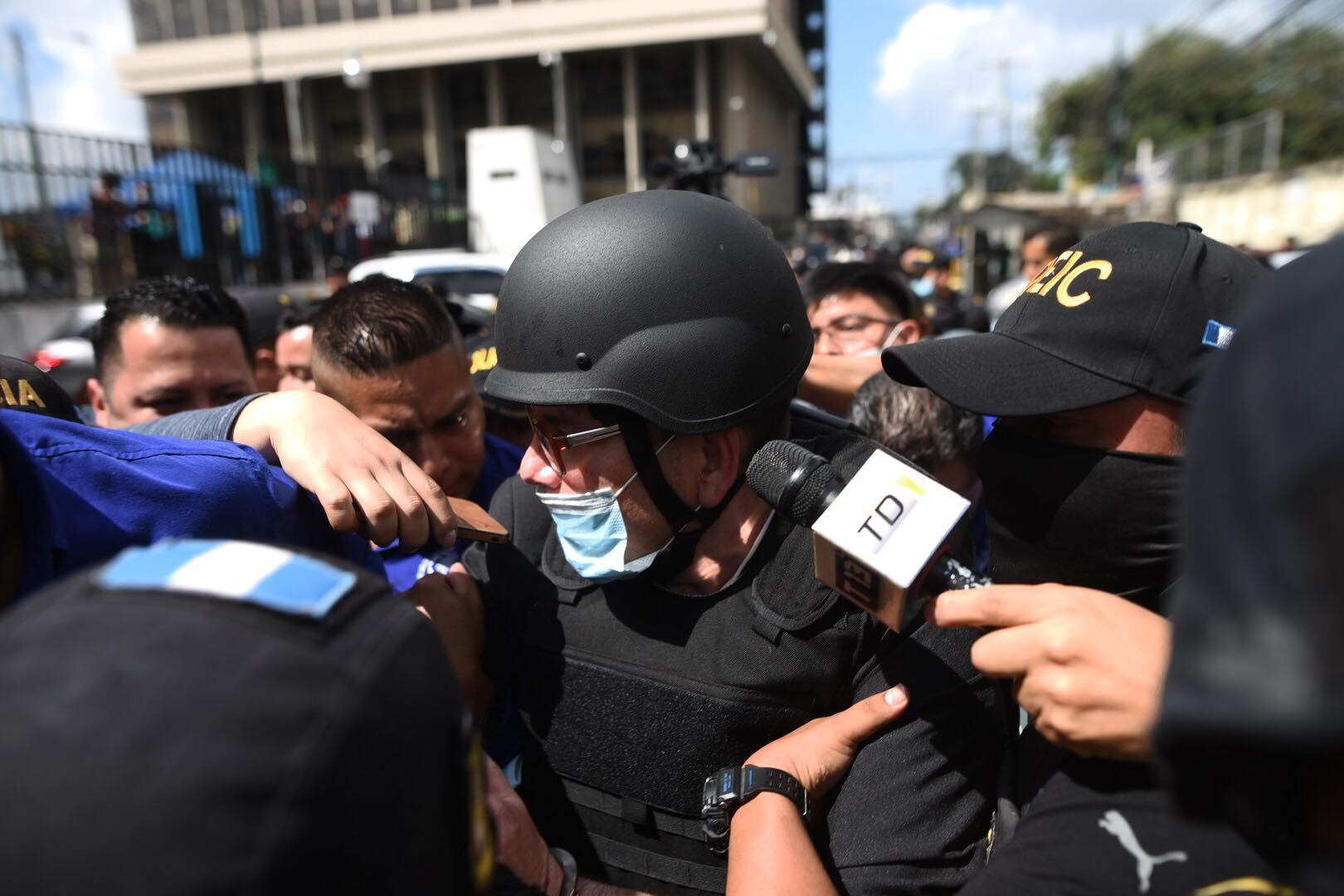 Un fuerte dispositivo de seguridad se desplegó y acompañó a Baldizón, quien portó un casco y chaleco blindado, en su trayecto a Torre de Tribunales.