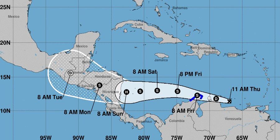 “Con información del Centro Nacional de Huracanes de los Estados Unidos (NHC, por sus siglas en inglés), el potencial ciclónico Trece tiene un 90% de probabilidades de fortalecerse en las próximas 48 horas”, indica la entidad.